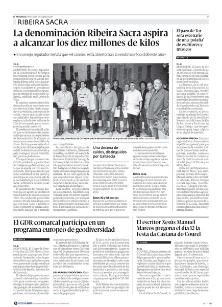 O COUREL. El Ayuntamiento de O Courel ultima los preparativos del programa de la próxima Festa da Castaña, que llegará a su vigésimo cuarta edición y que se celebrará el día 12 en Seoane. El pregonero será el escritor local Xesús Manuel Marcos